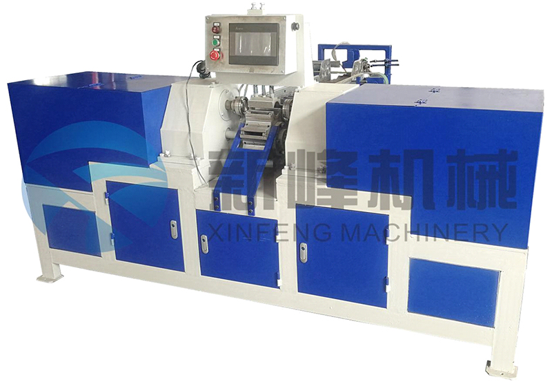 1:該機(jī)械采用雙軸多刀切管方式,將紙管進(jìn)管上軸,多刀一次精切完成,并有自動退管方式,經(jīng)輸送鏈將紙管送出,一次完成生產(chǎn)工藝。